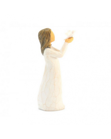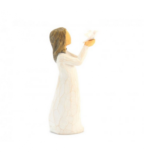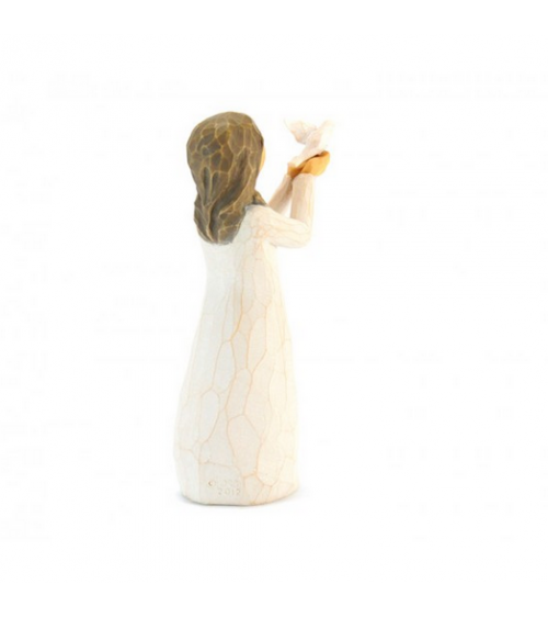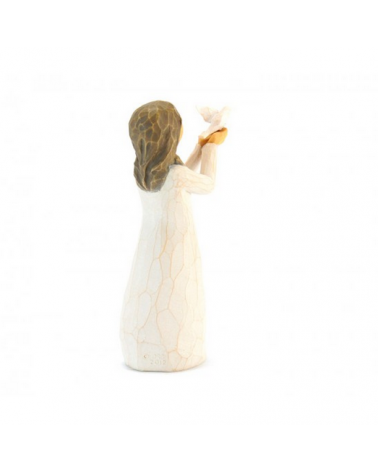 Statue "Soar", representing a girl, with a dove, made of hand painted resin, wood style. Willow Tree Collection by the artist Susan Lordi. Packed in their original box with certificate of warranty.