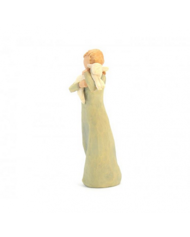 Statue "Peace on Earth", representing a woman with a lamb, symbol of peace, with metal sign, made of hand painted resin, wood style. Willow Tree Collection by the artist Susan Lordi. Packed in their original box with certificate of warranty.