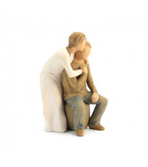 Statue "You and Me", representing a couple of lovers, with metal sign, made of hand painted resin, wood style. Willow Tree Collection by the artist Susan Lordi. Packed in their original box with certificate of warranty.